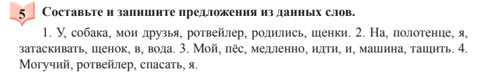 У, собака, мои друзья, ротвейлер, родились, щенки. 2. На, полотенце, я,