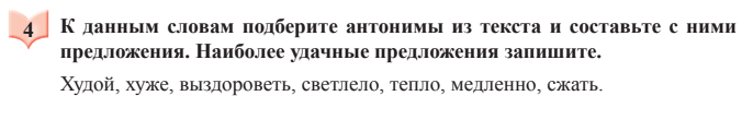 Худой, хуже, выздороветь, светлело, тепло, медленно, сжать.